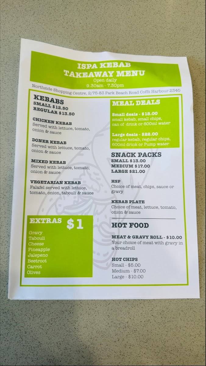 Introducing the Menu at ISPA Kebab Coffs